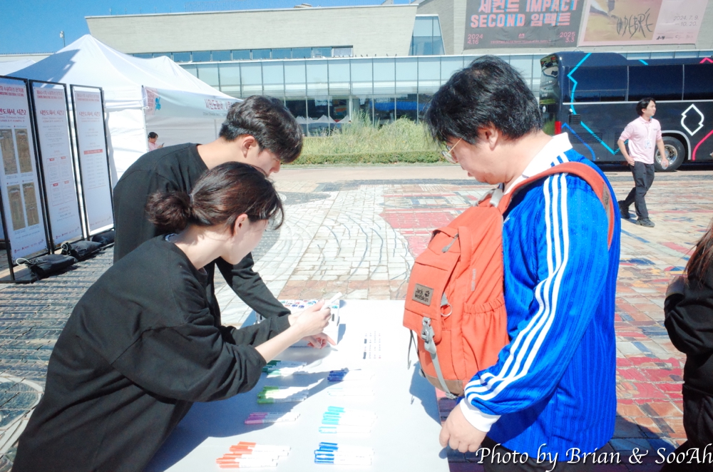 이 곳을 지나서는 광장 안쪽에 설치된 메인 무대와 관객석 바로 바깥쪽에 있는 그레이트북 '시민일득록'이랑 시민도화서 시즌2가 진행되고 있었습니다. 작년에는 관객석 뒤쪽의 전면을 이용했던 '시민일득록'의 경우에는 올해는 스크린 사이즈가 많이 줄었습니다. 사실 사전 인터뷰한 시민들의 영상인데, 그닥 많이 보는 분도 없고, 또 유튜브 링크로 가면 따로 볼 수도 있어서 잘한 선택으로 보이구요.