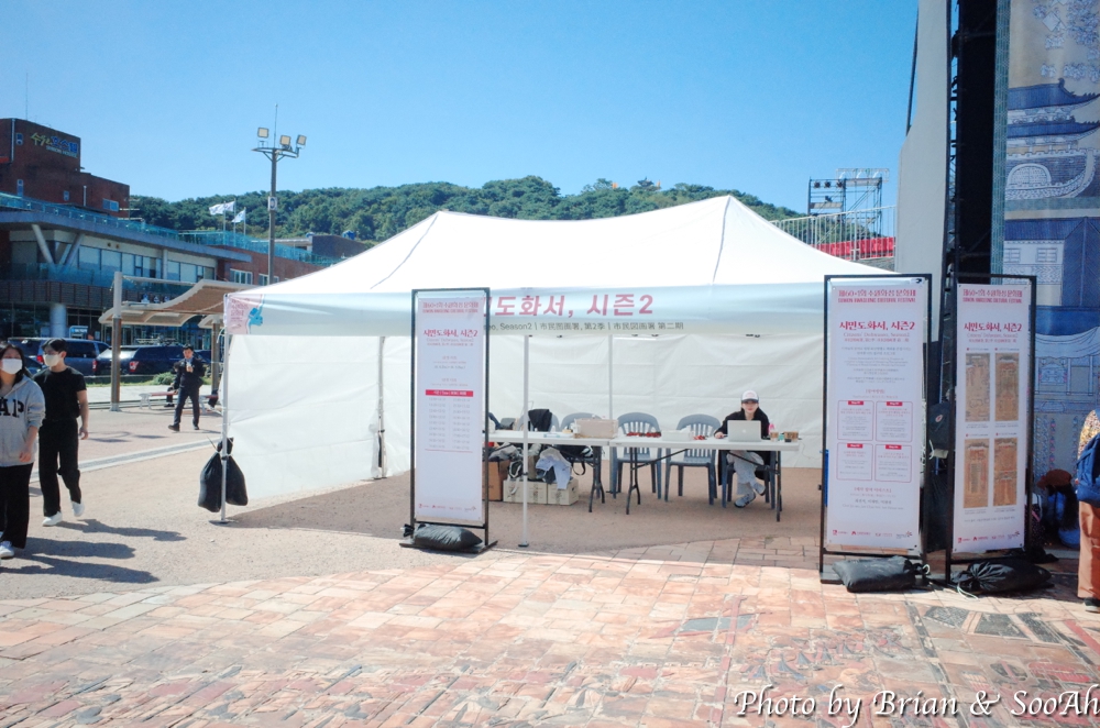 이 곳을 지나서는 광장 안쪽에 설치된 메인 무대와 관객석 바로 바깥쪽에 있는 그레이트북 '시민일득록'이랑 시민도화서 시즌2가 진행되고 있었습니다. 작년에는 관객석 뒤쪽의 전면을 이용했던 '시민일득록'의 경우에는 올해는 스크린 사이즈가 많이 줄었습니다. 사실 사전 인터뷰한 시민들의 영상인데, 그닥 많이 보는 분도 없고, 또 유튜브 링크로 가면 따로 볼 수도 있어서 잘한 선택으로 보이구요.