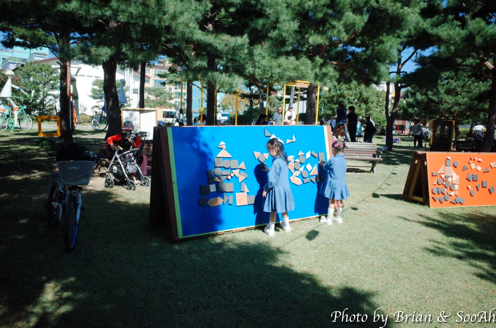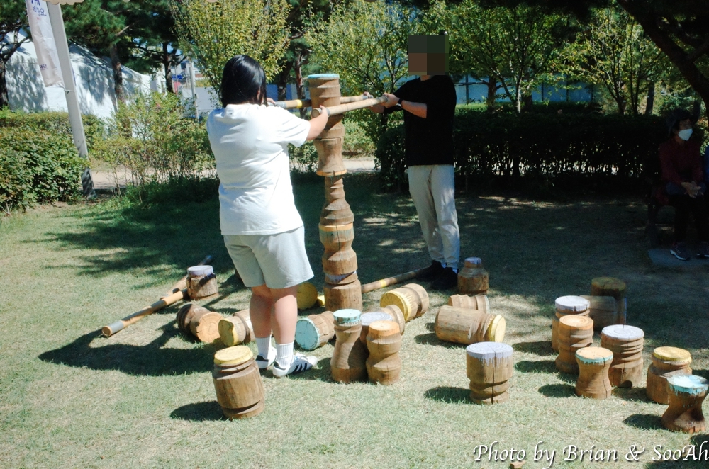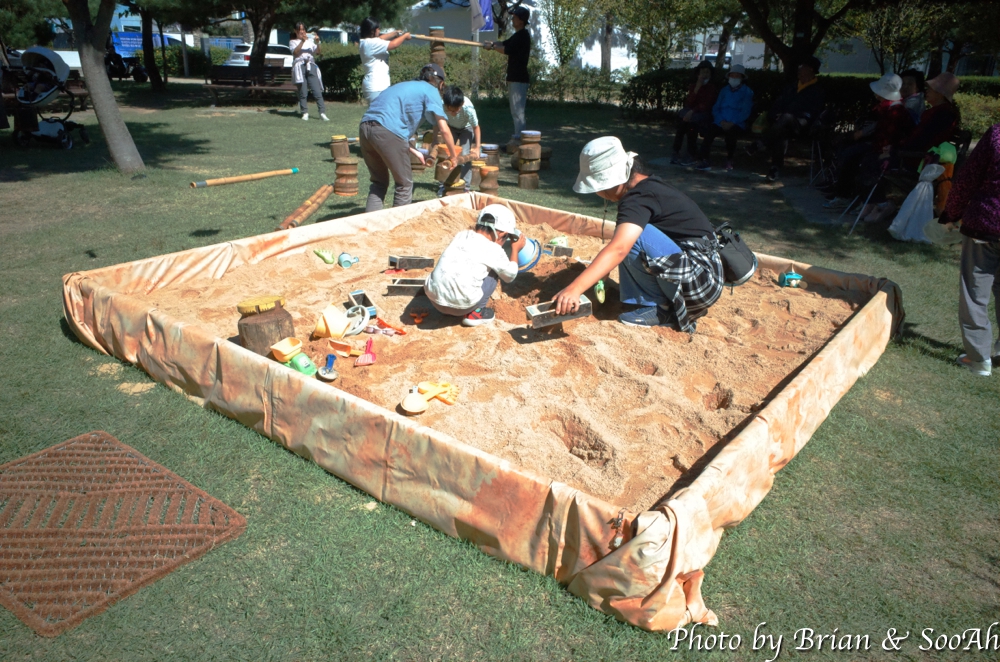그렇게 개막연같은 특별공연을 제외한 화성행궁광장에서 할 수 있는, 볼 수 있는 상설 전시/체험들을 다 마치고는 주변으로 이동했습니다. 행궁광장과 미술관 옆에 있는 잔디밭에서 펼쳐진 <축성놀이터>는 최근 몇 년 간 계속 진행되었던 문화제 단골 행사로, 이번에도 많은 아이들이 즐기고 있었고, 비슷한 체험들이 있어서, 아이들에게 체험 기회를 넘기고 (^^) 저는 사진만 찍었네요.