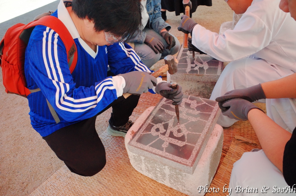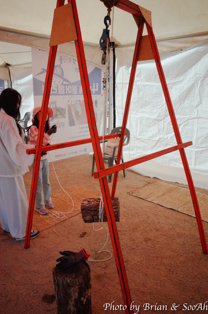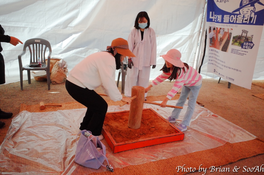 우화관 옆 앞마당에는 <수원화성, 축성을 도와줘>라는 체험행사가 작년에 이어 또 진행되었습니다. 축성에 필요한 여러 가지 공예를 직접 체험해 보는 건데요. 평일 낮이다 보니 별로 없어서 저도 몇 개는 해보고 몇 개는 다른 분이 하는 걸 사진만 찍었네요.