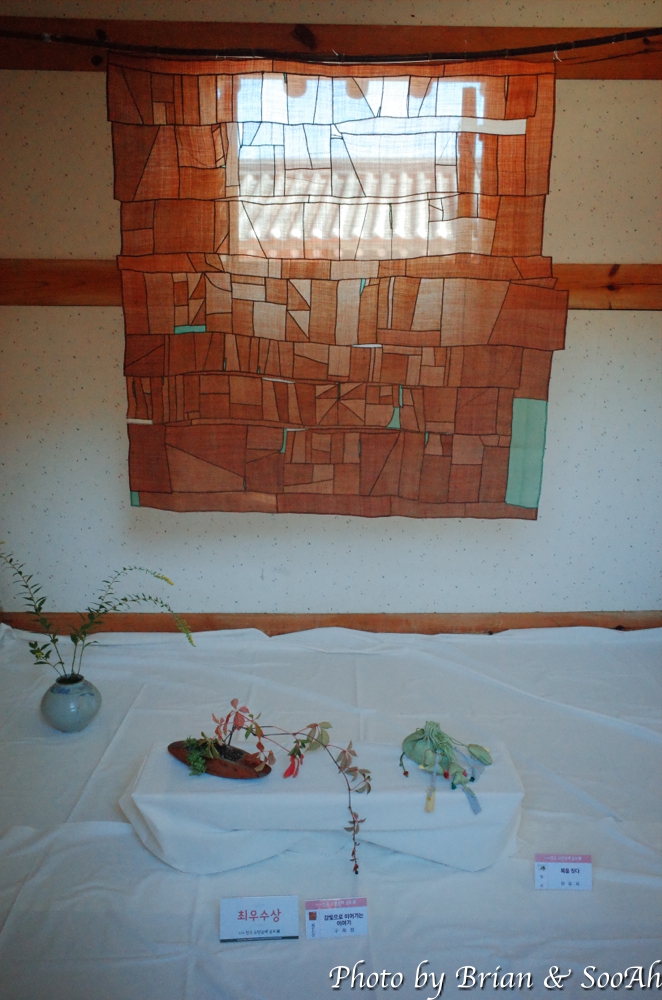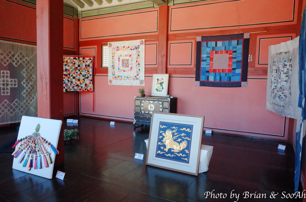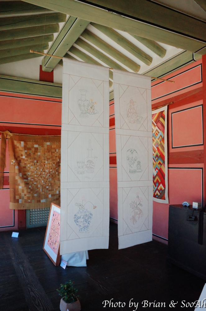 봉수당 말고 행사를 또 자주 하는 곳 중 하나인 유여택 쪽으로 가보니 여기에는 전국 규방공예 공모전에서 수상한 작품들을 전시하고 있었습니다. 바람에 날리는 작품들을 보니 뭔가 가을이 오는 느낌이라 좋았습니다.