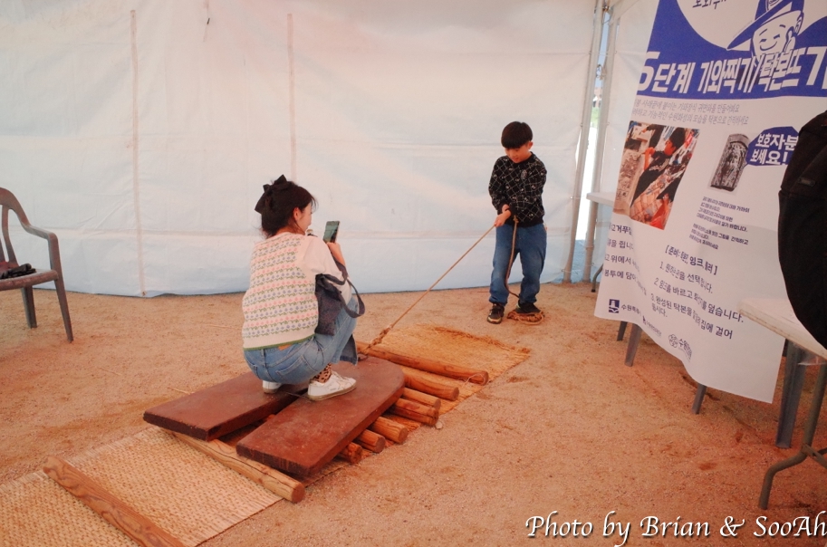 우화관 옆 앞마당에는 <수원화성, 축성을 도와줘>라는 체험행사가 작년에 이어 또 진행되었습니다. 축성에 필요한 여러 가지 공예를 직접 체험해 보는 건데요. 평일 낮이다 보니 별로 없어서 저도 몇 개는 해보고 몇 개는 다른 분이 하는 걸 사진만 찍었네요.