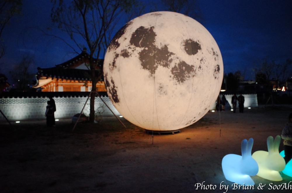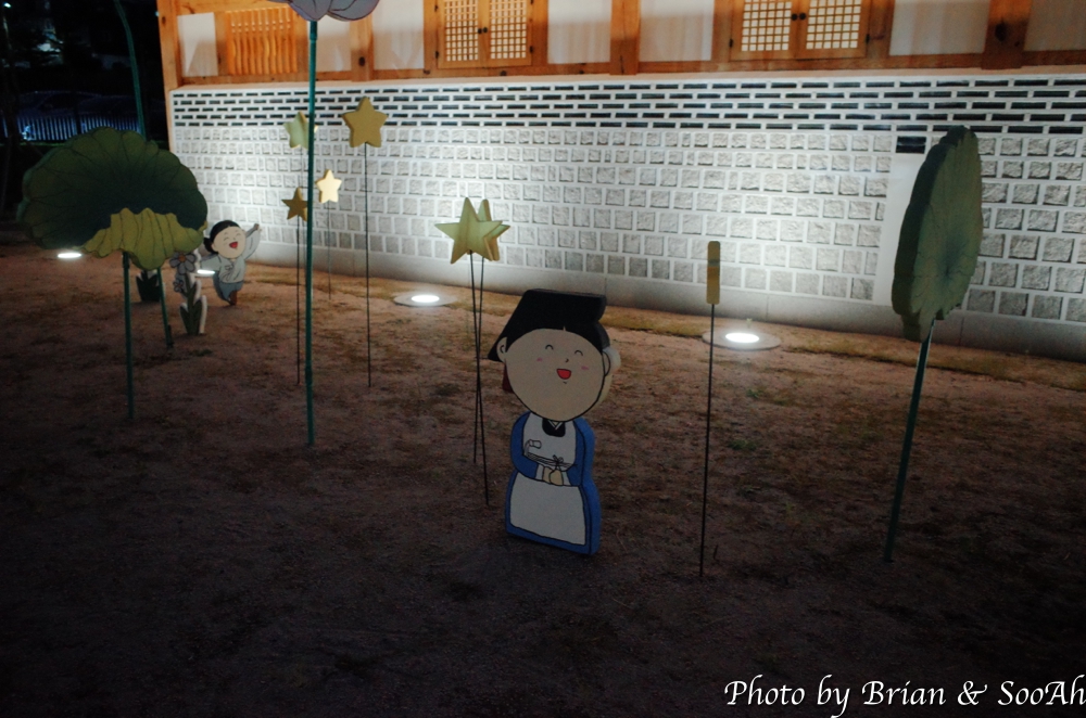 그리고 별주 밖의 연못과 뜰의 조형물도 밤에 조명이 들어오니 다른 분위기였습니다.