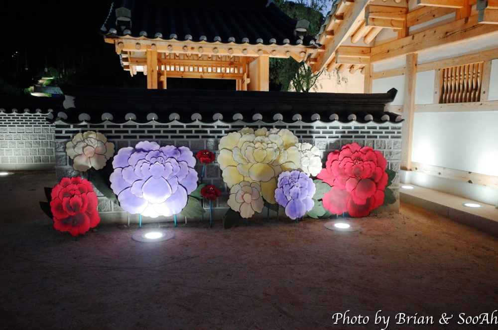 그리고 별주 밖의 연못과 뜰의 조형물도 밤에 조명이 들어오니 다른 분위기였습니다.