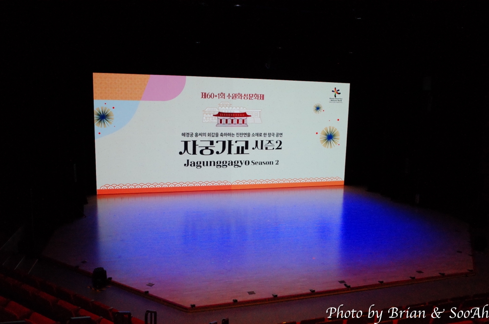 작년에는 조형물로 화성행궁광장에 있었던 자궁가교였는데, 이번에는 정조테마공연장에서 공연의 형태로 만나보게 되었습니다.