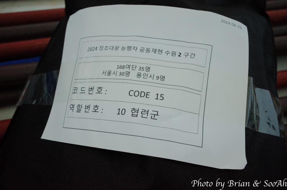 올해에는 작년처럼 인터파크에서 체험 행렬을 모집하는 게 아니라, 구글 폼 같은 형태로 재현 행렬에 참여할 사람을 '수원문화재단' 공지로 올라와서 이를 신청하게 되었습니다. 작년에 봤던 재현 행렬에 참여했던 분들이 뭔가 지역 단체들에게 협조 공문을 통해 모은 게 아니라, 이런 형태로 진행이 되었던 거였더군요. 그리고, 올해는 작년과 같은 체험 행렬은 외국인 대상으로만 열리게 되어서, 내국인이 참여할 방법은 이 재현 행렬 중 하나로 참여하는 것 빼고는 없었는데.. 내년은 어쩔지 모르겠네요.