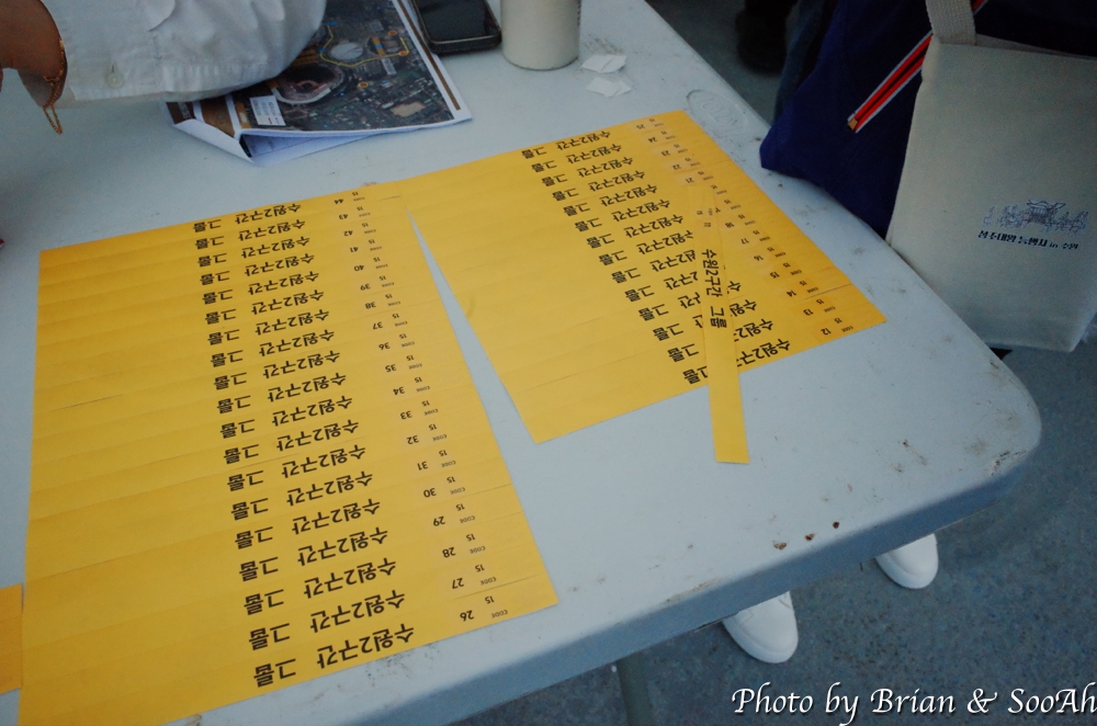 참가 지역 또는 형태에 따라 구분된 리셉션으로 찾아가서는, 도착 여부를 확인하고는 행렬에서 맡게 될 역할과 그에 따른 복식을 지급 받고는 역할과 위치에 따라 배정된 천막으로 가서는 거기서 옷을 갈아입고는 행차가 실제 출발하는 4시까지 대기를 해야 했습니다. 그리고 그 텐트 안에는 텐트에 배정된 그룹이 들고 갈 기물들이 배역 번호에 따라서 준비가 되어 있었습니다.
