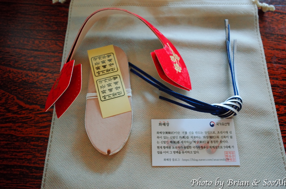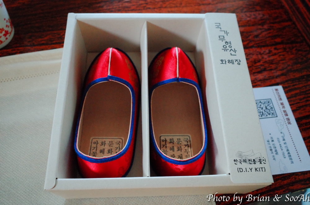 그렇게 만든 꽃신은 키트가 담겨 있던 상자에 담아서는 보자기에 담아 각자 기념품으로 가져갔습니다. 원래의 방식대로 하면 엄청 더 힘들겠지만, 이렇게 약식으로나마 화혜장을 체험할 수 있어서 너무 좋았고, 덤으로 이쁜 조그만 꽃신 하나가 생겨서 더더욱 좋았던 체험이었습니다.