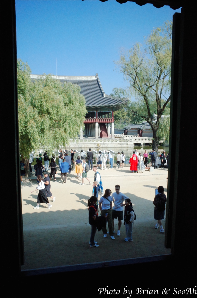 이번 2024 궁중문화축전에서 사전예약으로 참여하는 체험 행사가 예전보다는 좀 줄었다는 느낌이었는데요.. 그래도 될 수 있는 한, 능력껏 예매를 시도해서, 두번째로 예매에 성공한 행사가, 지난 글에 쓴 "경복궁 상의원 체험"의 나머지 다른 하나의 체험인 화혜장이었습니다. 화혜장이란 목이 긴 신발을 뜻하는 "화"와 목이 없는 신발을 뜻하는 "혜"를 만드는, 전통 신발을 만드는 전통기술을 말합니다. 첫번째 체험 타임을 했다보니 오전 10시부터 시작이라, 집에서부터 아침 일찍 나왔음에도 아슬아슬하게 시간 맞춰 도착했습니다. 도착해 보니, 이미 도착하신 다른 체험 참가자 분들이 자리를 잡고 있었고, 저랑 마나느님도 빈 자리를 잡아서 앉았습니다. 잠시, 시간이 남아서, 수정전 안과 수정전에서 보이는 경회루를 잠깐 감상했네요.