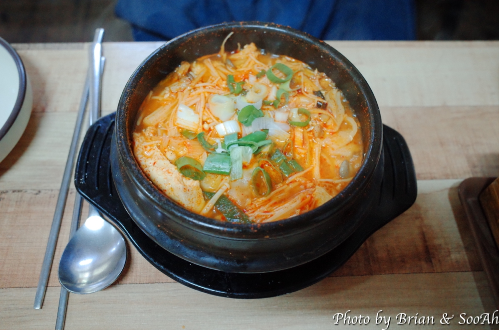 메뉴는 만두국과 만두뚝배기라는 게 있고, 그 외 녹두전도 있더군요. 마나느님과 저는 손만두국과 만두뚝배기를 하나씩 시켜서 나눠 먹었는데, 손만두국은 김치말이밥처럼 빨갛긴 한데 많이 맵다거나 한 느낌은 아니고 그냥 시~원한 느낌의 국물에 입 한 가득보다도 더 큰 만두가 5~6개가 들어 있었습니다. 만두도 가게이름에서 유추할 수 있듯이 이북식만두여서 고기향이 강한 그런 만두는 아니어서 개인적으로는 더 좋아하는 만두 형태였습니다. 그리고 개인적으로 취향이었던 건 만두뚝배기였습니다. 만두소를 그냥 풀어서 얼큰한 양념에 같이 풀어서는 뚝배기로 한 건데 이게 공기밥이 있으면 그냥 밥도둑이 되겠더군요.