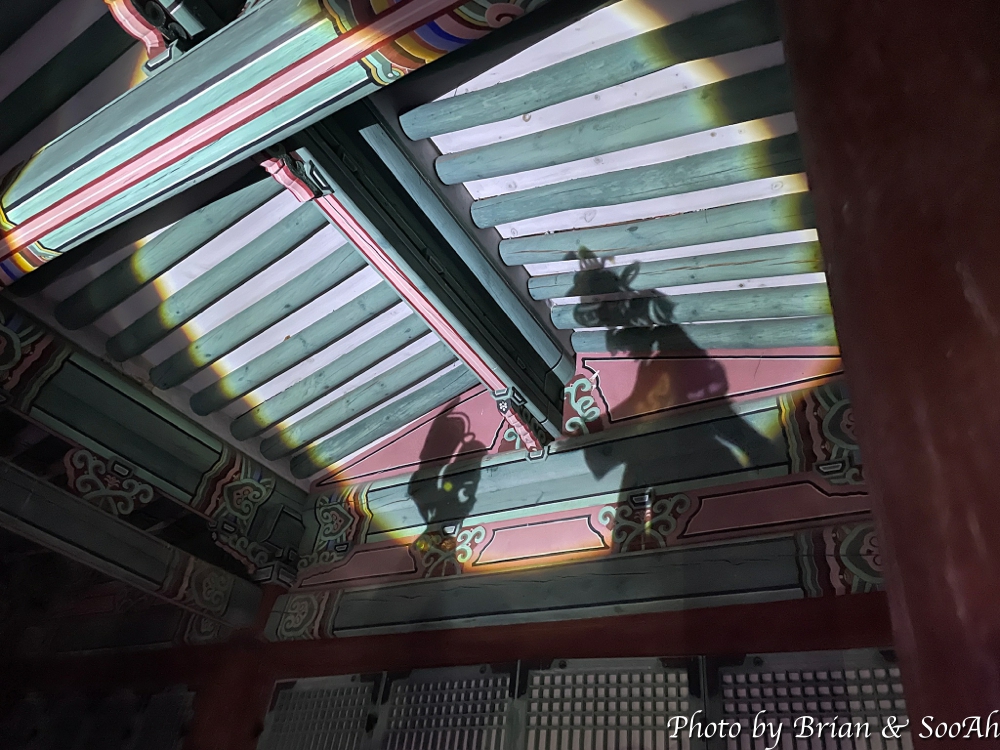 그렇게 재실을 출발해서는 가장 먼저 만나는 수릉에서 살아 생전에 왕이 아니었으나 사후에 추존되어 들어오신 분들에 대한 이야기를 간단히 들은 후에는 바로 이어지는 곳에 있는 현릉에 도착해서는 정자각 쪽으로 이동했습니다. 여기에서는 일단 조선왕릉의 여러가지 구조에 대해서 정자각 건물에 쏘아진 슬라이드 영상을 보면서 설명을 들었습니다.