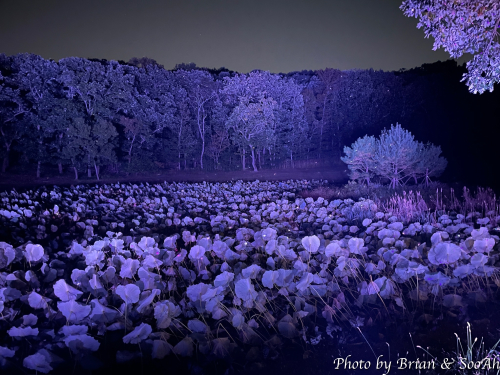 원릉에서 사도세자를 보고 나서는 계속 이동을 해서는 숭릉 앞에 있는 연지로 이동했습니다. 여기에는 조명을 통해서는 마치 반딧불이 엄청 있는 것 같은 미디어아트를 하고 있었습니다. 잠깐 관람을 하는데, 이 동구릉에서, 아니 조선왕릉에서 가장 윗어른인 태조...를 연기하시는 분이 나와서는 이런 저런 얘기를 하고, 같이 사진도 찍고 하는 시간을 가졌습니다.