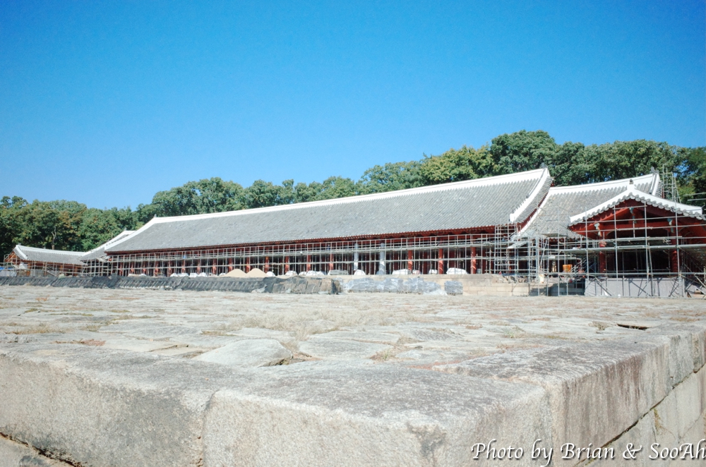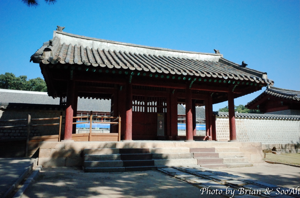 지금은 정전이 보수 공사 중이라 좀 아쉬웠지만, 정전의 옆 담벼락 너머에 있는, 제를 지내기 위해 들어가기 전 준비하는 공간에서 이런저런 관련된 이야기를 들었습니다.