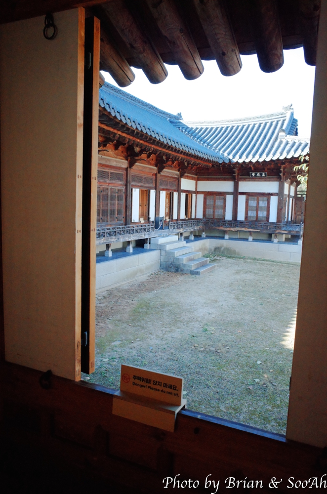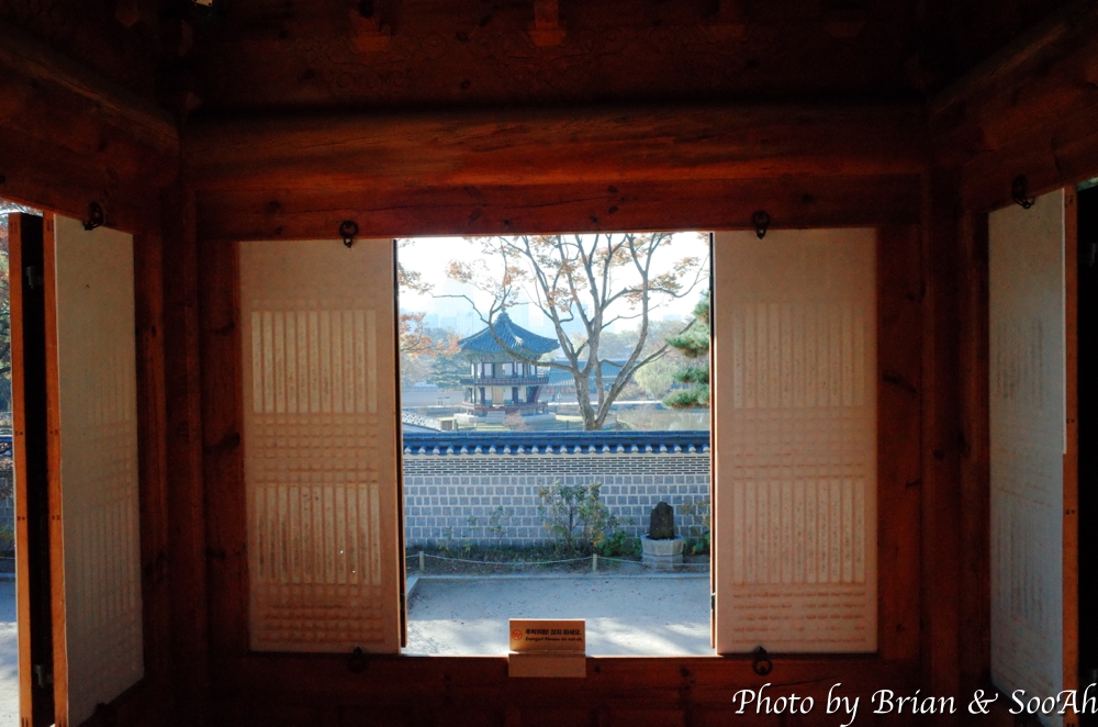 이 동쪽으로 가는 복도각을 지나서 다시 북쪽으로 지나가는 복도각으로 가니 그 옆의 창문을 통해서는 방금 지나온 장안당과 정화당의 뒤쪽의 모습을 볼 수 있었습니다.