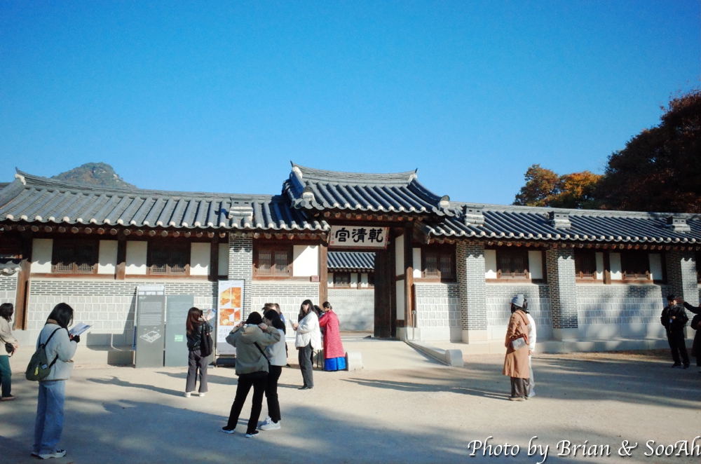 그리고는 시작 시간이 되어서는 건천궁에 대한 간단한 설명을 듣고는 건천궁 정문을 통해 입장을 했습니다. 바로 건천궁 남행각과 곤녕합 남행각 사이의 마당에 들어갔다가는 바로 건천궁에서 사랑채에 해당하는, 즉 고종의 집무실에 해당하는 장안당과 추수부용루 앞으로 이동했습니다.