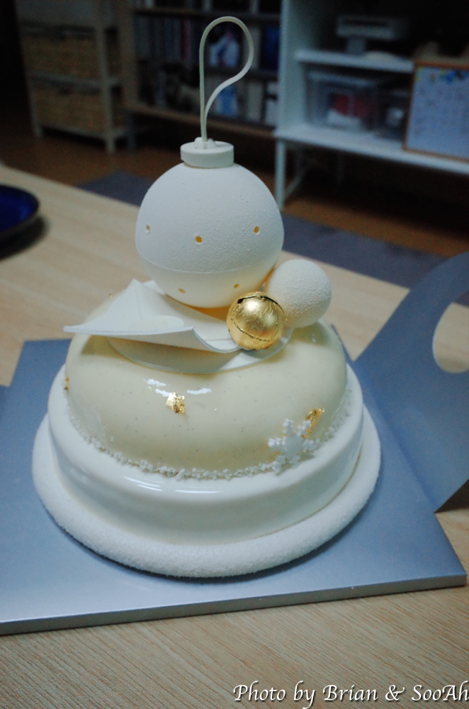 박스를 오픈하니, 화이트 초콜렛으로 외양을 이쁘게 만든 하아얀 케이크가 안에 들어 있더군요.