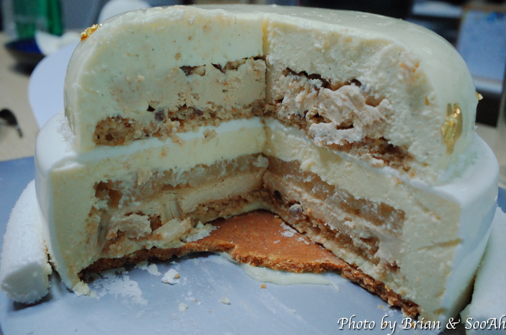 케이크는 마스카페토 바닐라 무스 케이크였고 그 안에는 피칸과 비스킷 등이 레이어로 되어서 담겨 있었습니다. 달달하면서도 씹히는 맛이 있어서 맘에 들었습니다.