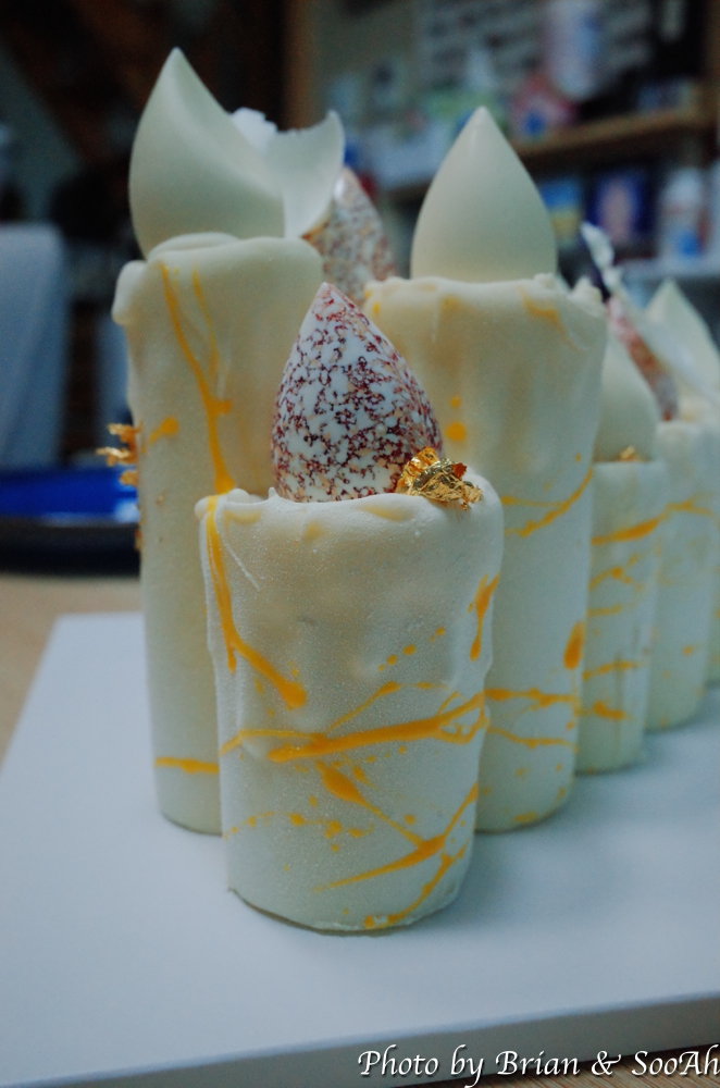 박스를 개봉하니, 10개의 초가 타들어간 시간이 다른 듯 높이가 다르게 되어 있었고, 화이트 초콜렛과 쟈댕디베르의 시그니처인 봉봉초코 빨간색으로 만든 초의 촛불이 섞여 있어서 좋았습니다. 봉봉초콜릿은 안쪽에 상큼한 내용물이 있어서 독특해서 좋더군요.