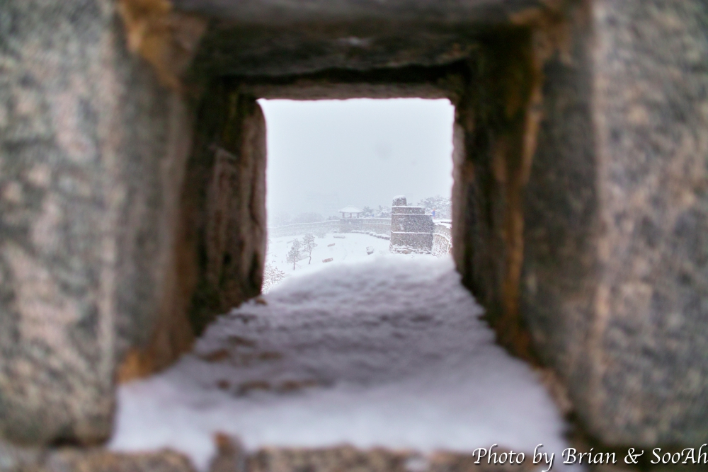 이 날은 눈 많이 온다는 얘기를 듣고, 수원화성의 겨울 풍경을 찍어 본 기억이 없어서 한 번 제대로 찍어보자고, 눈이 퍼붓는데도 일단 나갔드랬습니다. 집에서 동북공심돈 쪽으로 걸어올라가는데 이미 엄청나게 눈이 쌓여서는 걷기가 너무 힘들더군요. 안 넘어질려고 끙끙 대면서 겨우겨우 올라갔습니다.