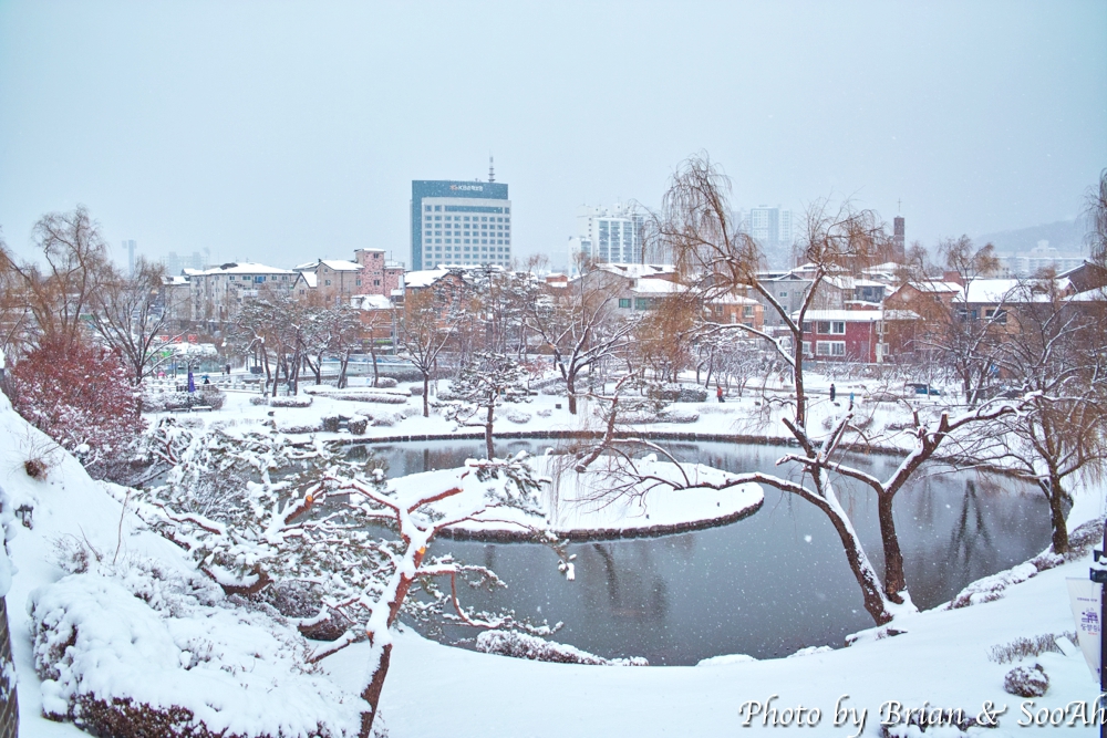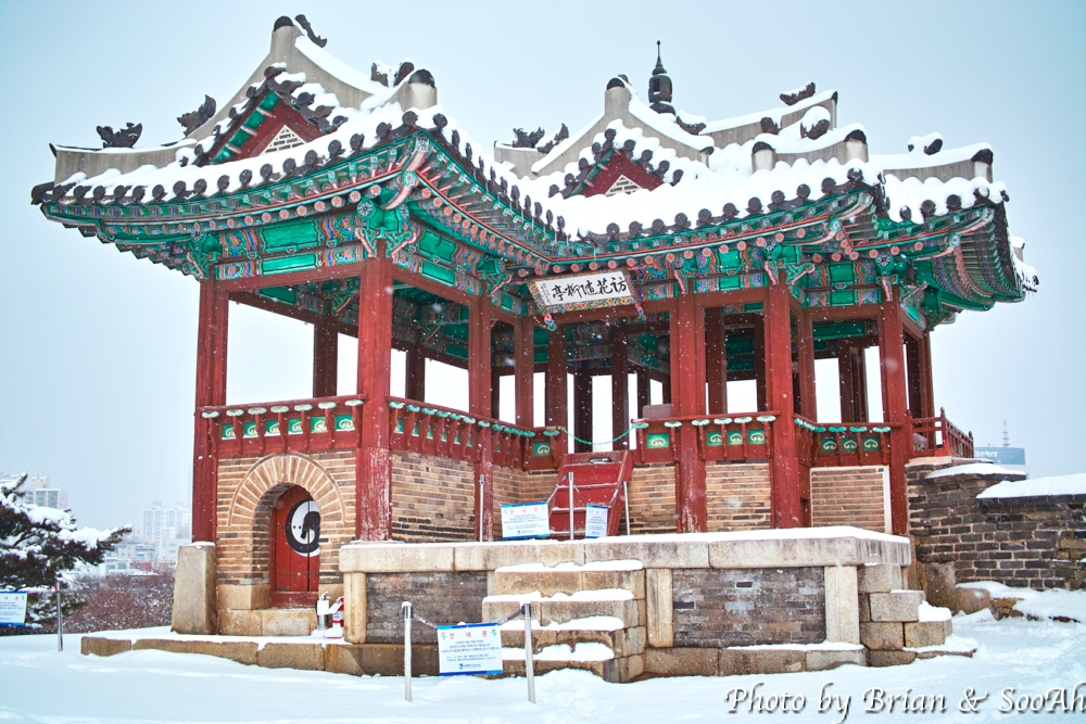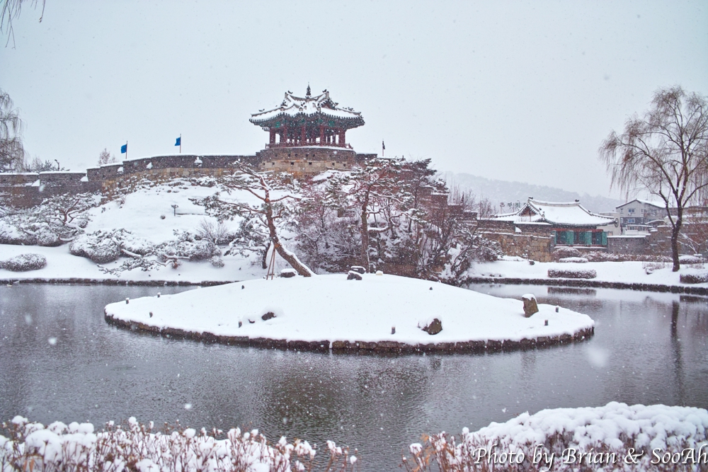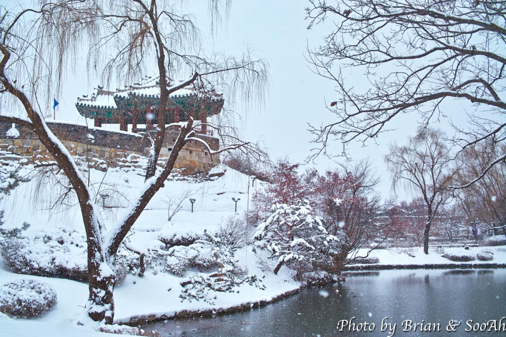 화홍문을 지나서는 요즘은 안전 문제 때문에 올라갈 수 없는 방화수류정도 들렀는데, 여기도 눈이 엄청 쌓였더군요.