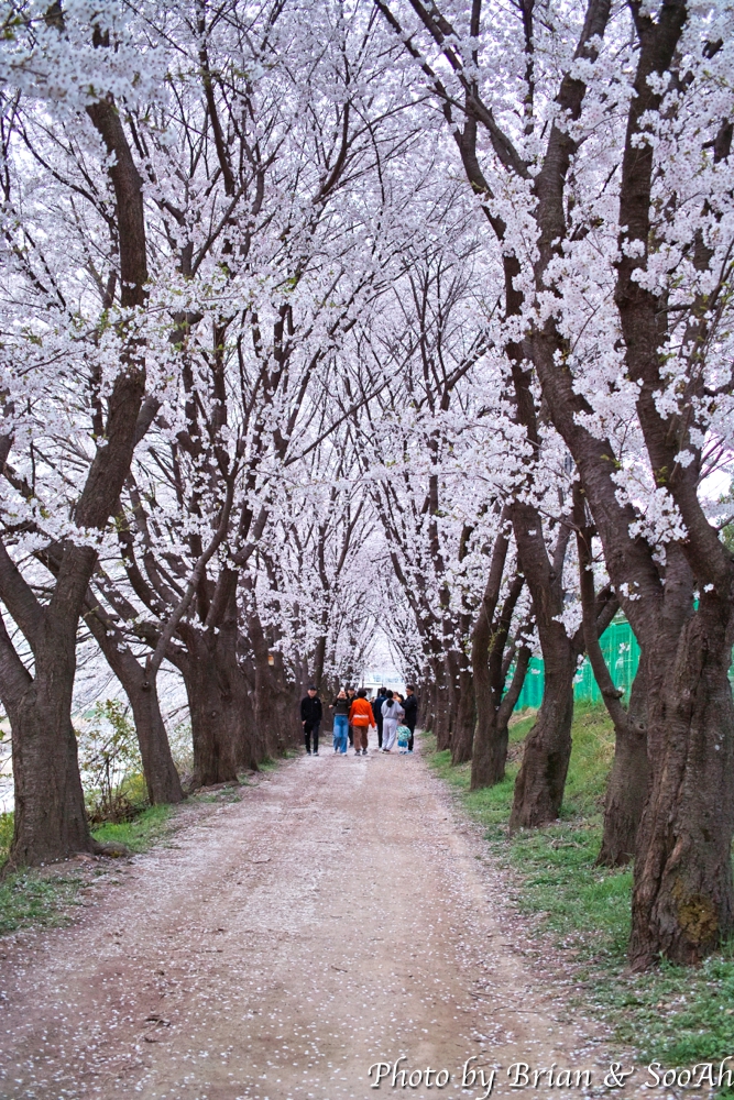 다리를 건너서 벚꽃 터널을 일단 걸어 들어갔습니다.