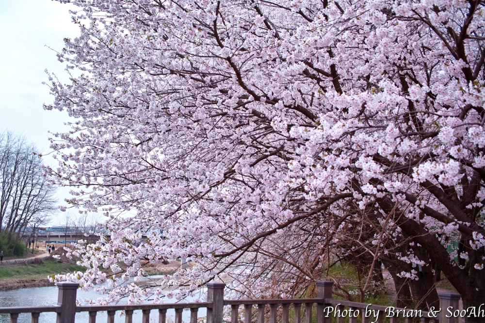 저는 일단 시작하자마자 바로 예전 수인협궤선이 다녔던 다리를 건너는 것으로 한 구역만 걸었는데, 그 다리에서 남북으로 하천이 흘러가는 양쪽을 바라다 보니 양쪽 다 천변에 벚꽃이 장관이었습니다.