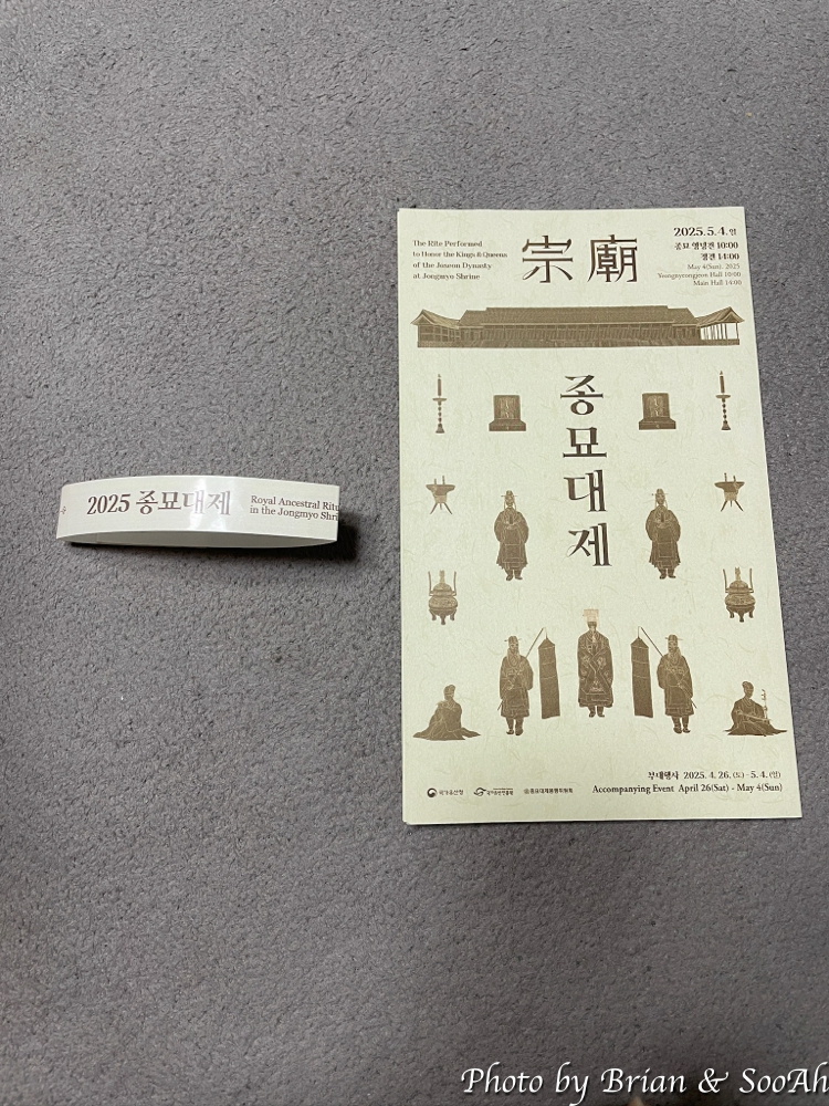 봄 궁중문화축전을 다니기 시작한 게 꽤 되었는데요, 사실 궁중문화축전보다 가장 가보고 싶었던 건 종묘대제였습니다. 매년 5월 첫 일요일에 하는데, 이상하게 일정이 꼬여서 예약을 할 수 없는 상황이 되거나, 지난 몇 년 간은 종묘 정전이 보수 공사를 하면서 종묘 정전에서 하는 걸 꼭 보겠다면서 정전 보수공사가 끝나기만을 기다렸는데, 드디어 올해 보수 공사가 끝나서 종묘 정전에서 오랜만에 종묘대제를 하게 되었습니다. 그리고 예매에 성공해서 가게 되었는데요. 원래는 종묘에 있던 신위들을 창덕궁에 옮겨 모셨었는데 이 신위가 다시 종묘로 돌아오는 환안제도 신청했었지만 추첨에 안 되면서, 종묘 대제만으로 만족을 해야 했습니다.