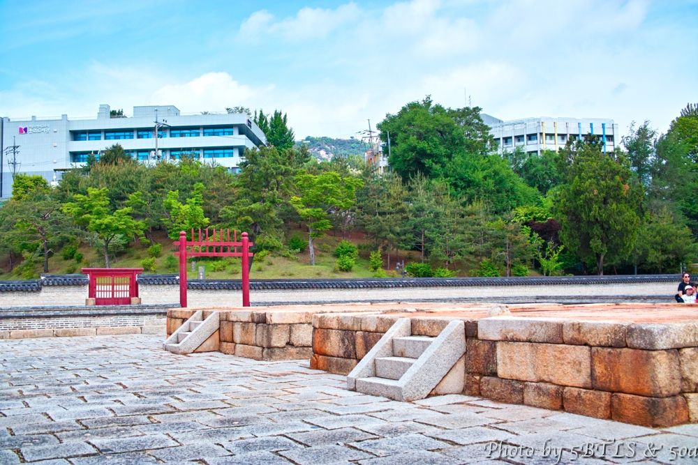 총 8개의 프로그램 중에 2개는 하반기에만 하는 행사여서, 나머지 6개 중에는 3개는 이미 가 본 조선왕릉이었고, 나머지 3개 중 2개는 안 가 본, 그리고 1개는 왕릉천행에서는 가 본 적이 없는 곳이라 이 세 개를 참가해보자고 정하고는 첫번째로 참가하게 된 게 '길례 - 조선왕조 능행길' 이라고 하는 행사였습니다. 길례는 조선왕실에서 행하기로 한 5가지 의례인 오례 중에서 하나로, "국조오례의"에서 정한대로 행해지는 의례 중 하나로, 쉽게 말해 장례를 얘기합니다. 근데 왜 길례를 하면서 사직단에서 행사를 시작하냐고 하면, 길례에서 정의한 제사를 올리는 대상은 천/지/인, 즉 하늘과 땅 그리고 사람 신인데, 사람 신은 바로 조선왕실의 역대 왕들이 되는 거고, 그들이 모셔진 종묘가 되는 거고, 하늘과 땅의 신은 바로 날씨와 농사 등에 관계되는 사직이 되는... 그래서 종묘사직이 되는 거고... 왕의 조상은 유일... 하다고 할 수 있으니 종묘는 하나지만, 땅은 지역마다 다르니, 한양에 사직단이 있듯이, 각 지역마다 사직단이 있었고 이게 서울 아닌 다른 지역에도 사직동이 존재하는 이유라는 (부산의 사직야구장.....) 이런 이야기들을 들으면서 사직단에서 왕릉팔경의 첫 장소에서 사진을 남겼네요. 사직단의 경우에는 그 내부까지는 보통은 들어갈 수가 없는데, 단체 방문을 신청하면 단이 있는 내부까지 들어가 볼 수 있다고 하고, 이번 행사에서도 들어갈 수 있어서 저도 처음으로 사직단 내부의 사진을 남겨볼 수 있었네요.