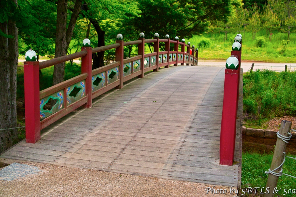 버스에 내려서는 입장해서 얼마 안 가니 나름 펼쳐진 곳에 시냇가에 높이 솟은 나무들이 있는게 멋있더군요. 그 사이로 삼릉으로 들어가는 다리가 있는 것까지...
