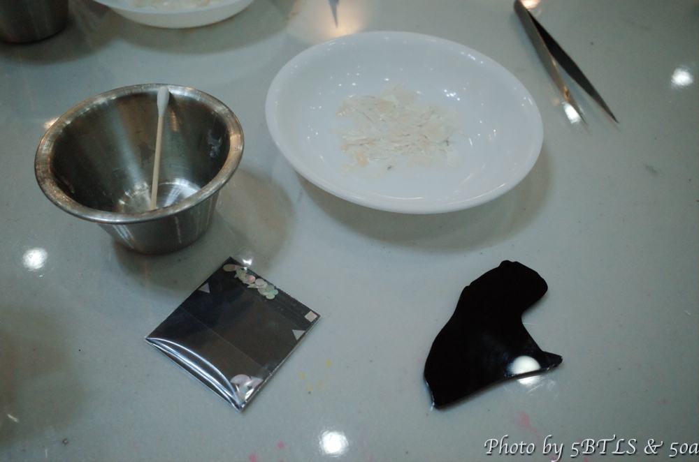 파주삼릉을 다 둘러보고 나서는, 체험 행사로 자개 키링을 만드는 체험을 고양에 있는 유진박물관이라는 곳에 들러서 했습니다. 물론 제대로 하려면 여러 달, 아니 여러 해가 걸리는 일이지만, 간단하게 미리 모양이 만들어진 자개를 접착제로 붙이면서 만드는 체험을 했는데... 이렇게 단순하게 한 겹을 붙이는데도 힘든데, 참 조상들은 대단했다는 생각이 들었습니다.
