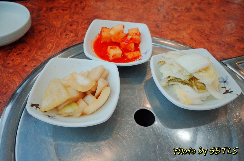 마시는 육수는 달고 진한 편이고, 냉면에 담긴 육수는 동치미 맛이 조금 더 강한 편이지만, 면을 풀고 나면 냉면 육수다운(?) 무미하고 깊은 맛이 나기 시작함. 면은 색깔에서도 알 수 있듯이 매우 매끈함. 고명은 삶은 계란 반 개, 무우조각, 오이, 편육이 올라가 있더군요. 특별히 더 맛있거나 하진 않지만, 잘 만든 평양냉면이긴 했습니다. 만두는 평양냉면 가게 하면 생각나는 그런 만두보다는 좀 더 간이 되어 있고, 사이즈가 작은 편이었습니다. 수육은 파,마늘 토핑으로 되어 따뜻하게 나와 있는데, 소스 찍어 먹으니 맛있었네요.