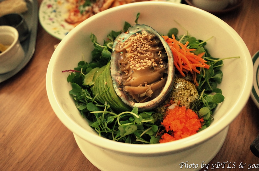 알배추 샐러드랑 저염전복비빔밥이 맛있었어요.